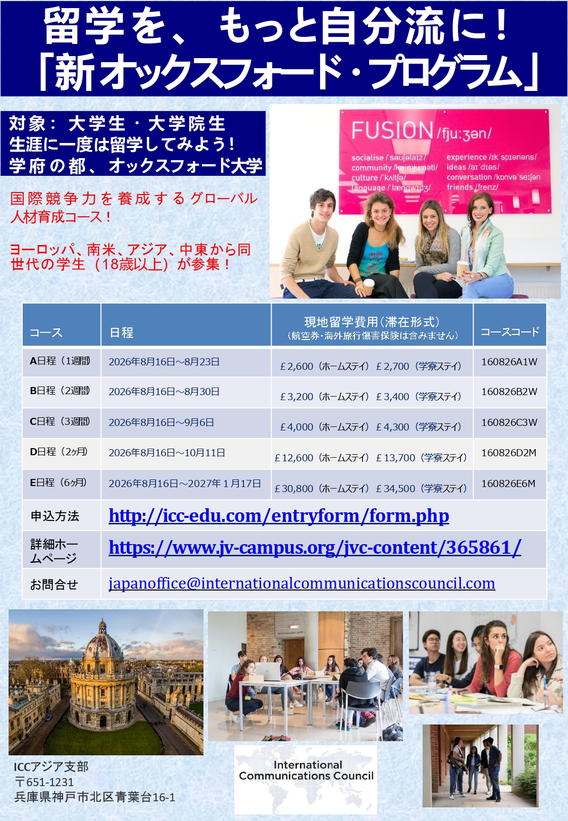 Oxford Study Abroad Programme for University students Itinerary (2M Course / 6M Course) 「留学を、もっと自分流に、、、新オックスフォード・プログラム夏期」 |